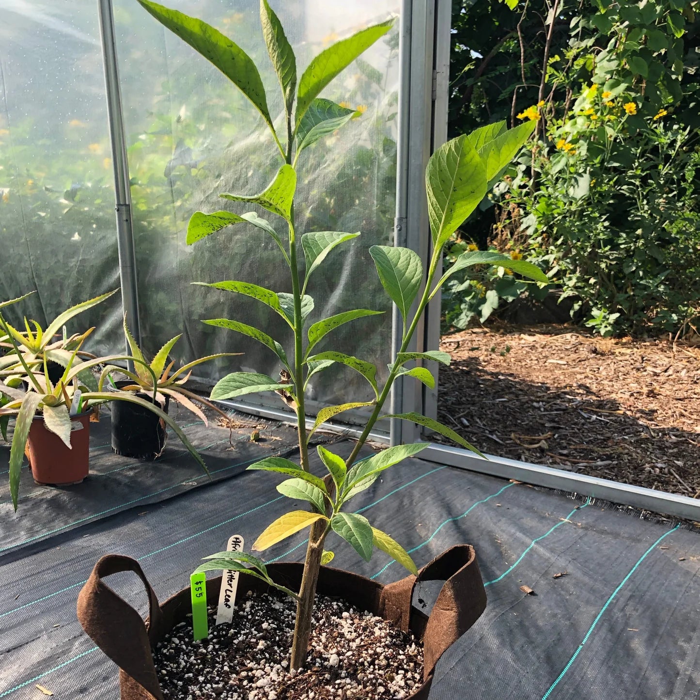 Shrubby tree from Tanzania is a great medicinal and pest repellent. Its most important compounds (found in the leaves, twigs, and roots) are steroid glycosides- type vernonioside B1 – these chemical substances possess a potent blood pressure health, anti-parasitic, anti-tumour, and bactericidal effect. Used widely in Sub Saharan Africa to treat parasites, stomach problems, hepatitis, nausea, malaria, and fever. Chimpanzees have been known to self medicate with this in the wild! Leaves can be eaten as a vegetable stewed or raw. Can be moved into full sun once past the small sapling phase, drought tolerant once established, prefers humidity and warmth.