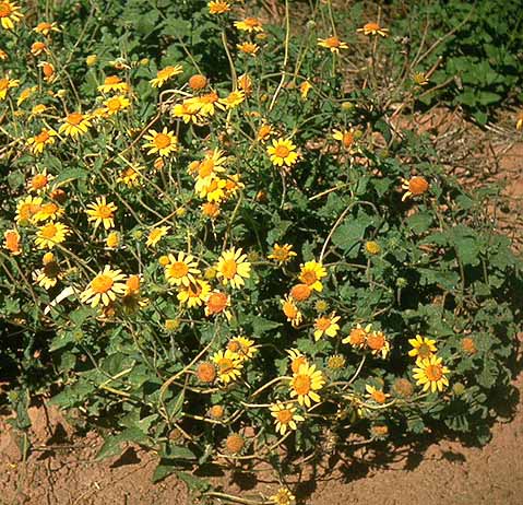 Little 2" yellow flowers look more like yellow daisies, and are a big butterfly draw from late spring through october. Low bush to 3', drought tolerant, full sun.