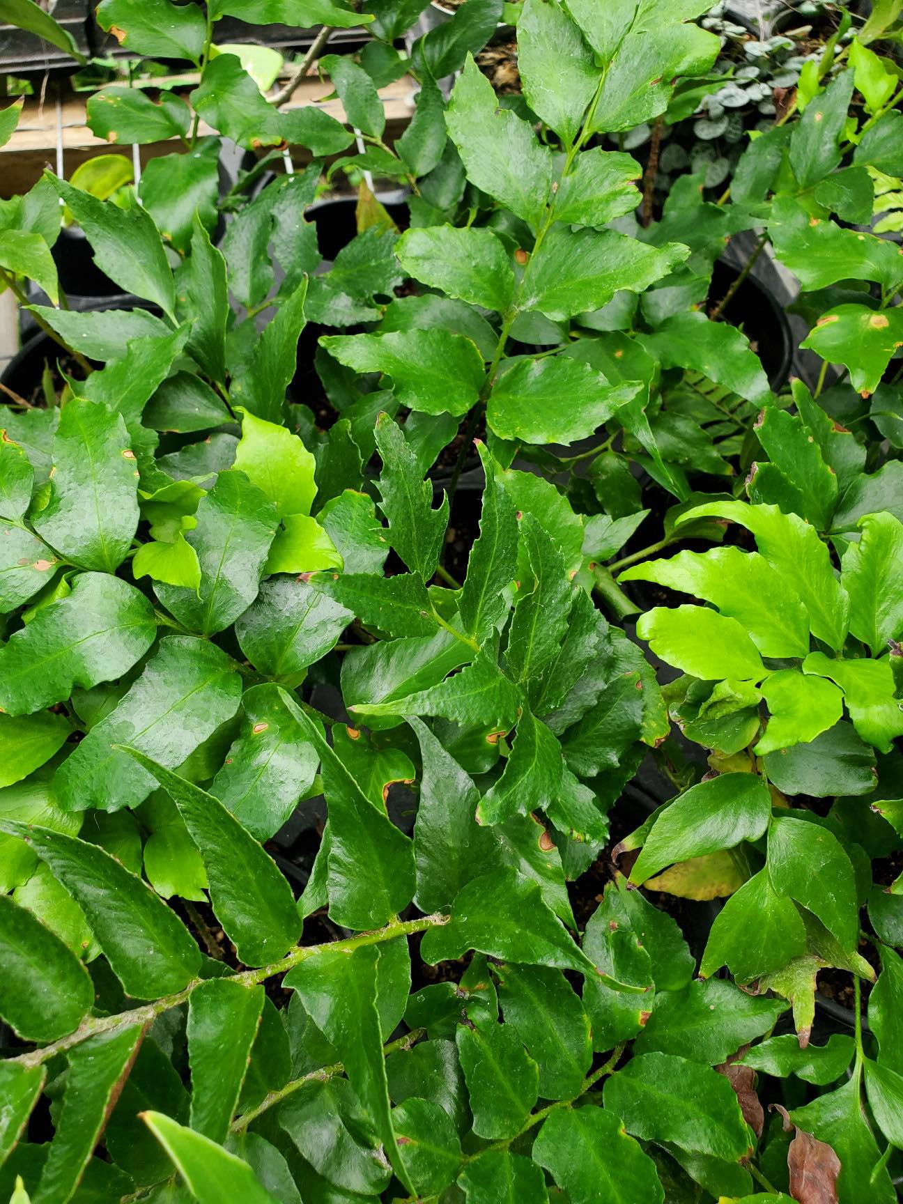 Pretty, slow-growing fern with leaves that look a little like a holly bush, native to Japan. It naturally grows from crevices, coastal cliffs, streambanks, rocky slopes, and other moist, stable areas. Shade loving, deer resistant, suitable for container. Drops its leaves after a frost but hardy in 8b.