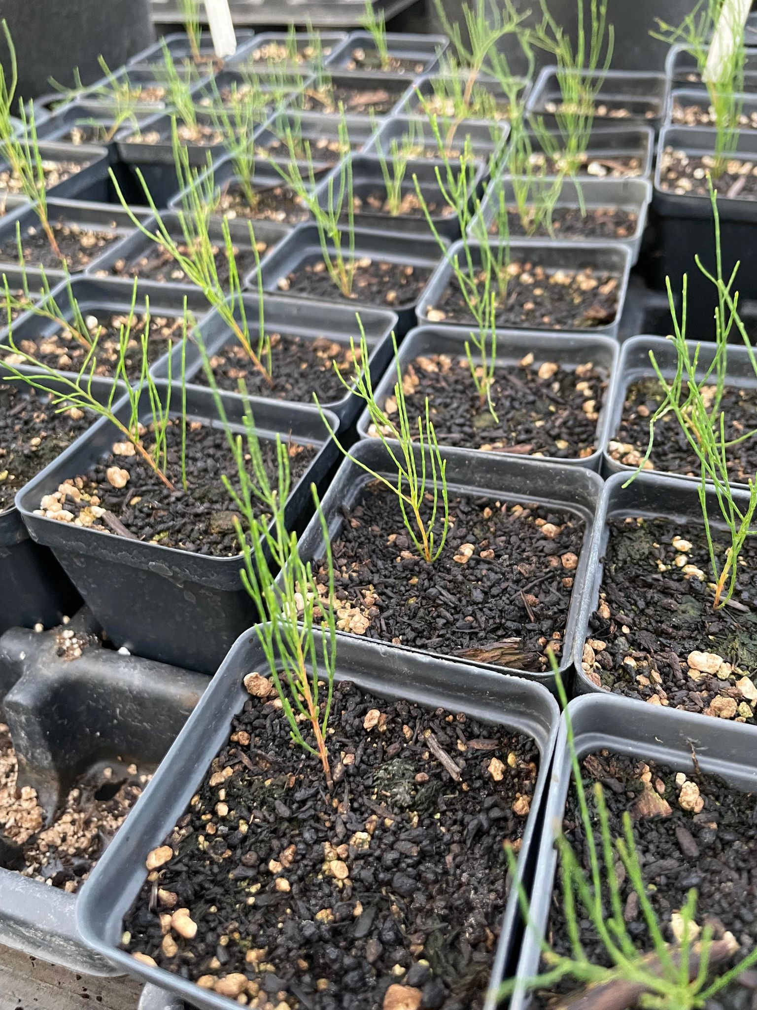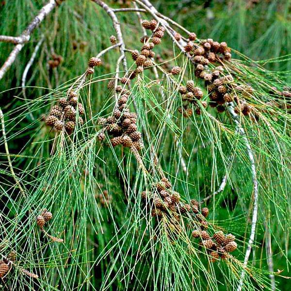HORSETAIL TREE'. Fast-growing tree to 60 feet, with weeping grey-green foliage and 1" cones. Australia. Zone 9. Stands drought down to 8" rain per year, and stands salt spray and is a good dune stabilizer. Nitrogen-fixing. The hard wood is used for tools, and burns with great heat, "Called the best firewood in the world."—National Academy of Sciences.