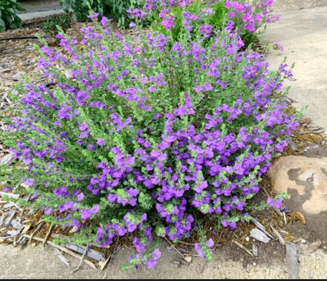 Staff favorite! AKA Wright's Purple Skullcap. EVERY Texas gardener should have this - it thrives and blooms during our hottest, sunniest weather. When we say "FULL SUN" we mean it. INDESTRUCTIBLE! Gorgeous gray-green mounds of purple flowers. Evergreen perennial. Height 8-12 inches, spread 12-20 inches. Drought tolerant.