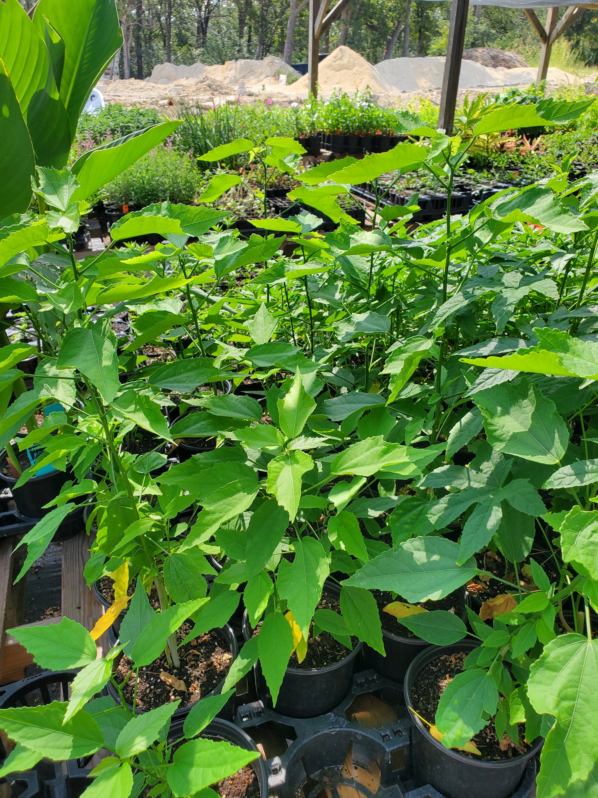 Native shrub has pretty pink blossoms, almost hibiscus-like in this variety, though smaller, and produces edible fruit that looks and tastes like tiny apples! Even pops apart into little wedge "slices". Drought tolerant, prefers part to full shade, though will tolerate sunnier spots. Attracts hummingbirds, butterflies, and moths.